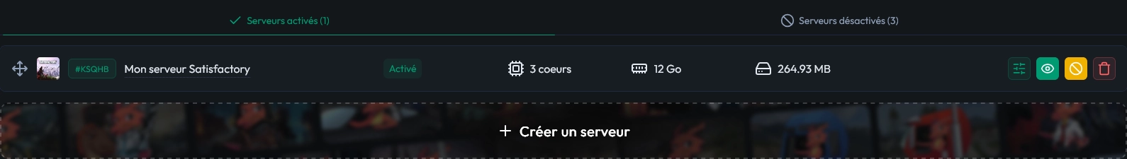 Désactiver un serveur et créer un serveur Satisfactory