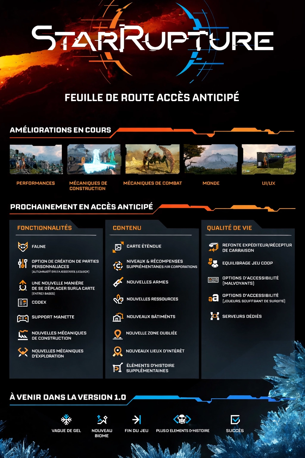 📝 Note : StarRupture est en early access en 2026, donc attendez-vous à des équilibrages réguliers et à du contenu qui évolue.