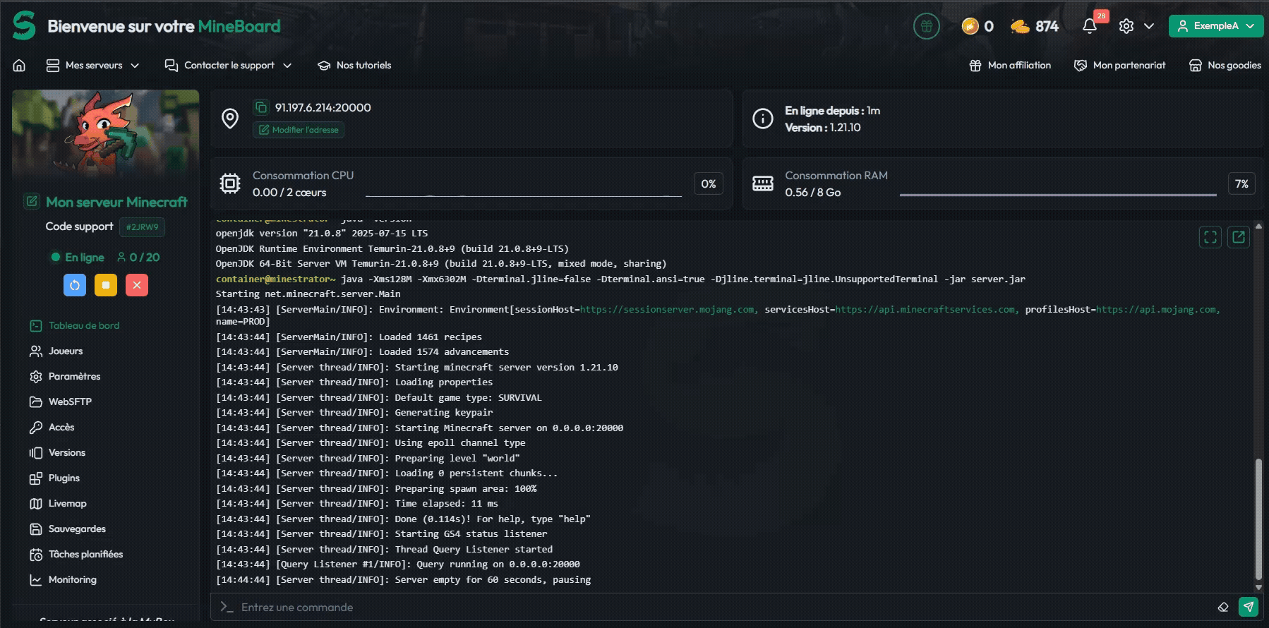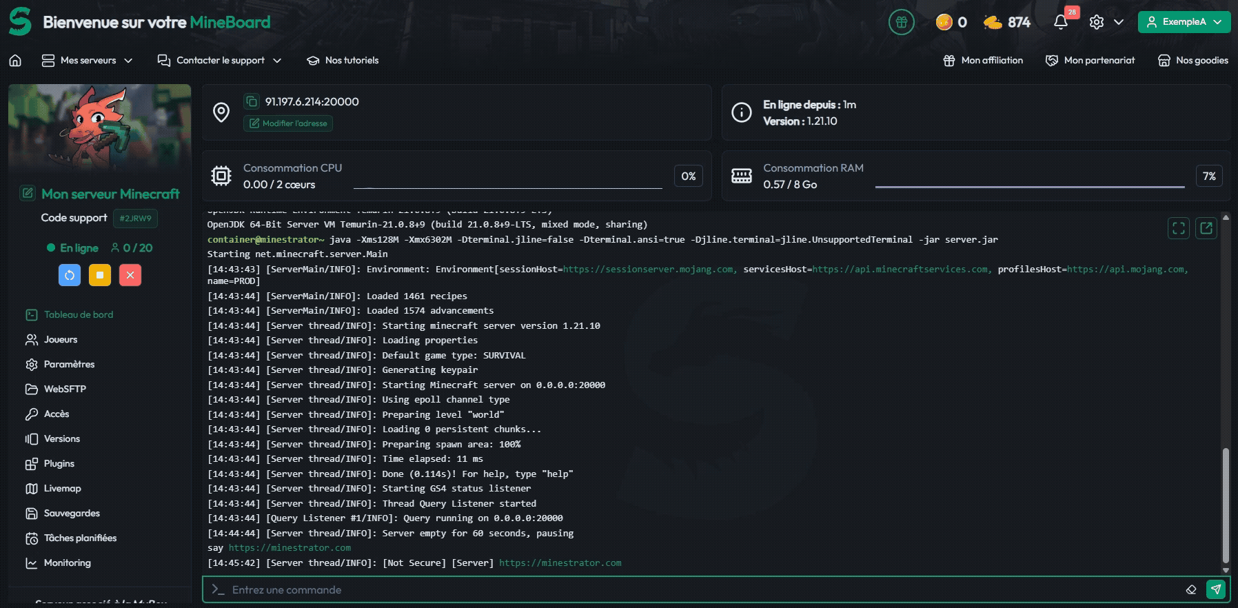 Envie de tester ces nouveautés dès maintenant ? Gérez vos services depuis MineBoard, et venez échanger avec la communauté sur notre Discord officiel. Vous n’avez pas encore de serveur ? Découvrez nos offres MyBox et lancez votre projet en quelques minutes.