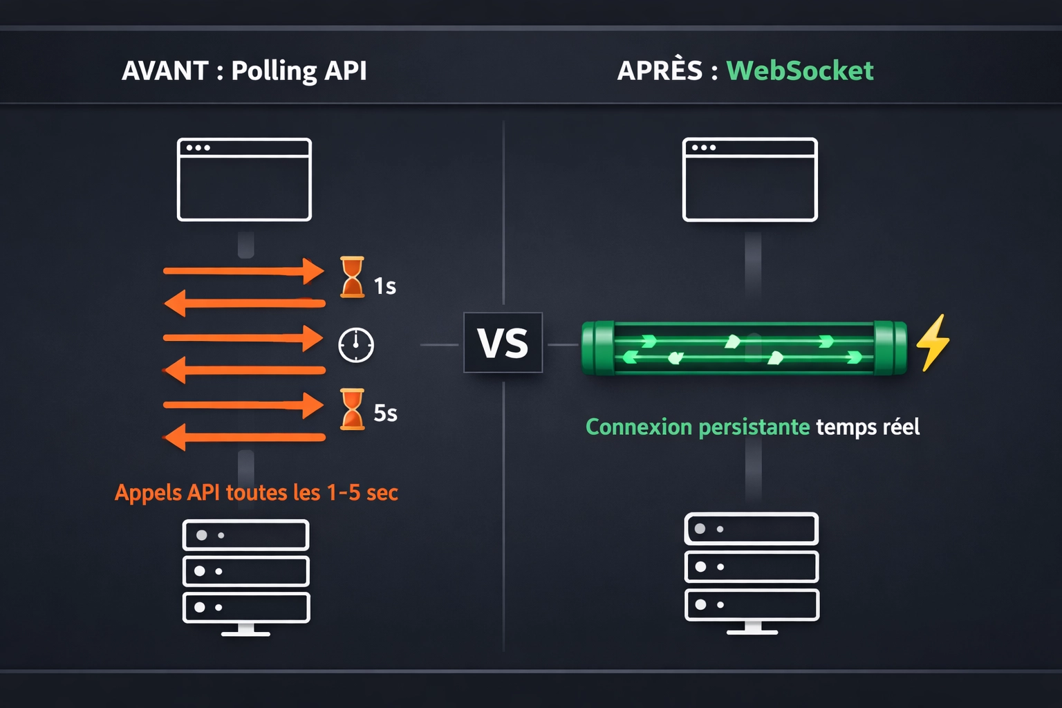 Les vérifications toutes les secondes ou toutes les cinq secondes disparaissent. Les informations sont désormais poussées automatiquement par le WebSocket : moins de requêtes, moins de charge, plus de réactivité sur tout l’écosystème.