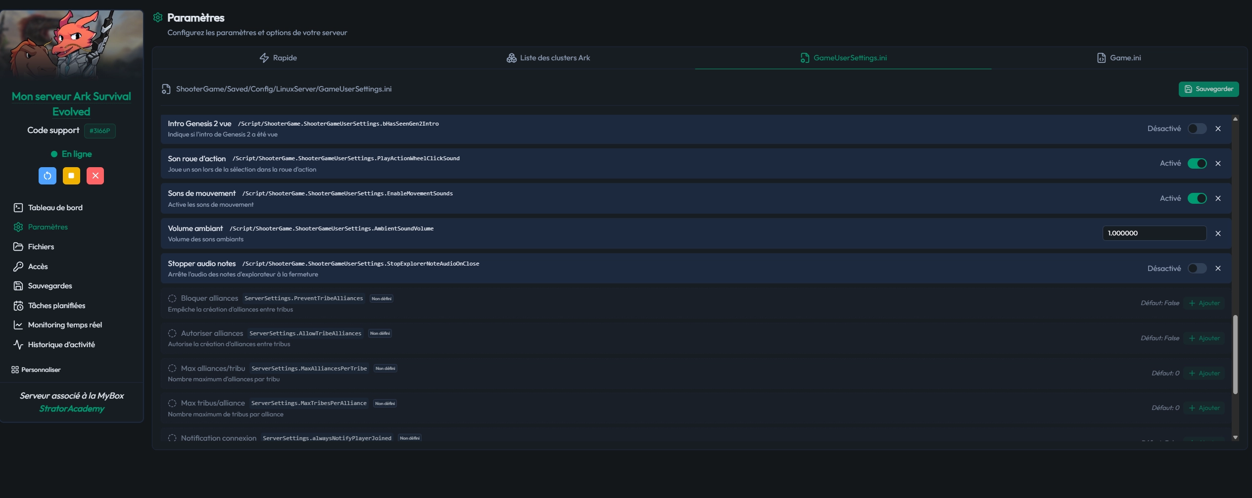 Le builder visuel affiche maintenant les « paramètres fantômes » : des options reconnues par le jeu, mais pas encore présentes dans votre fichier de configuration. Vous pouvez les découvrir et les activer sans éditer manuellement les fichiers.