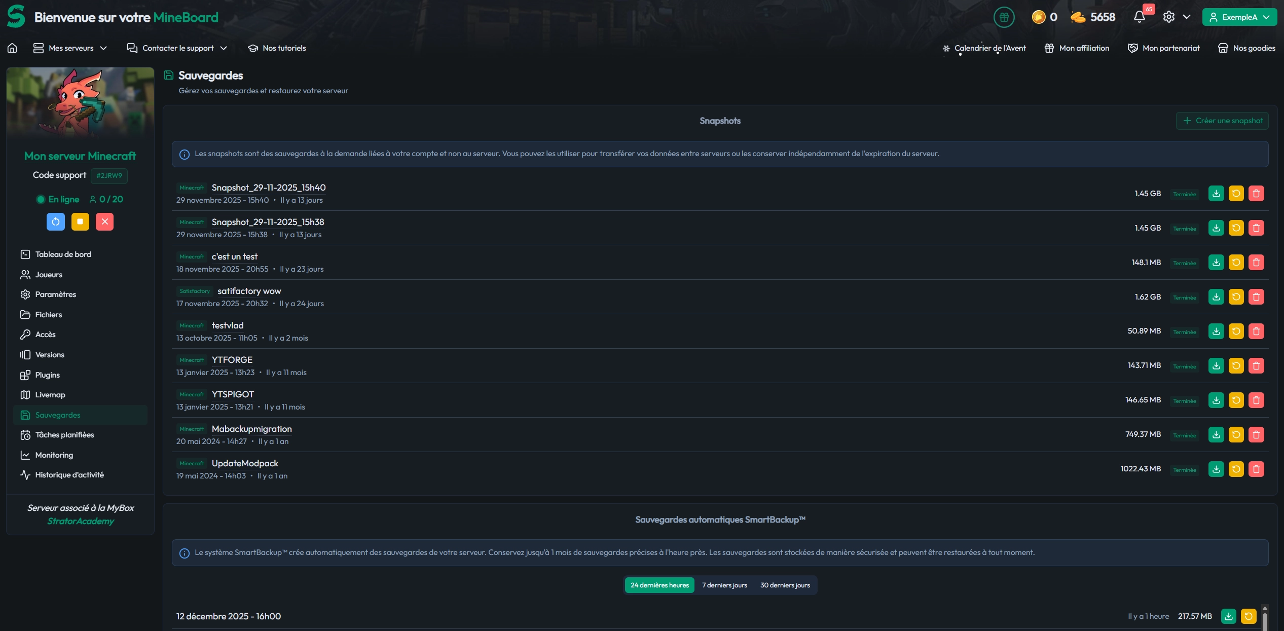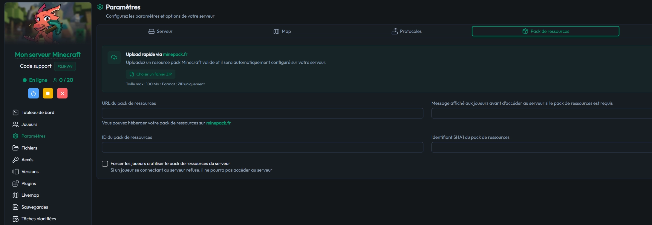 Tout le système d’upload a été revu en profondeur pour coller à vos usages réels (maps, mods, plugins, backups…).